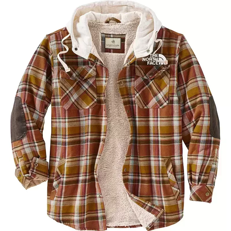 Mens Casual Fashion Plaid Hooded Cashmere Winter Long Sleeve Coat