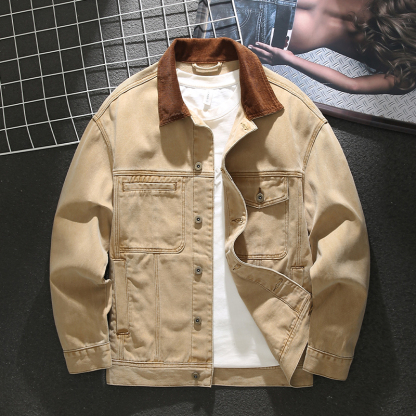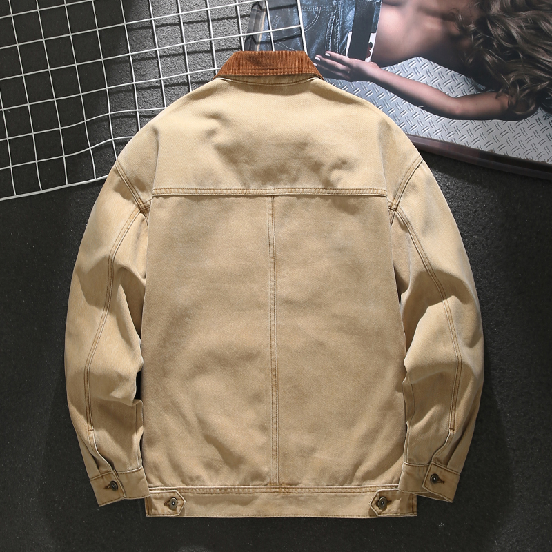 New trendy loose color block lapel denim jacket
