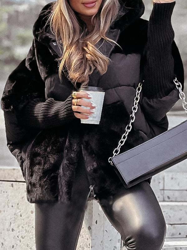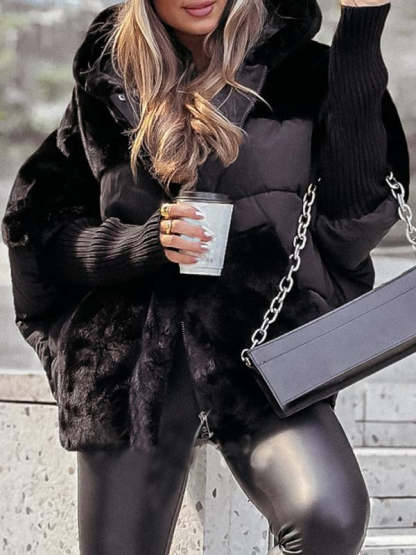 Women's Hooded Long-sleeved Fur Patchwork Winter Casual Coat