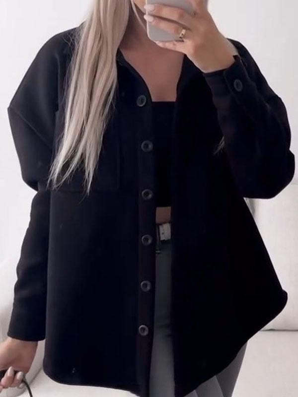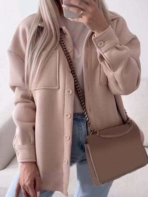 Women's Lapel Long Sleeve Buttoned Coat